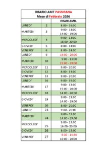 I nuovi orari del mesi di FEBBRAIO (solo previo appuntamento)