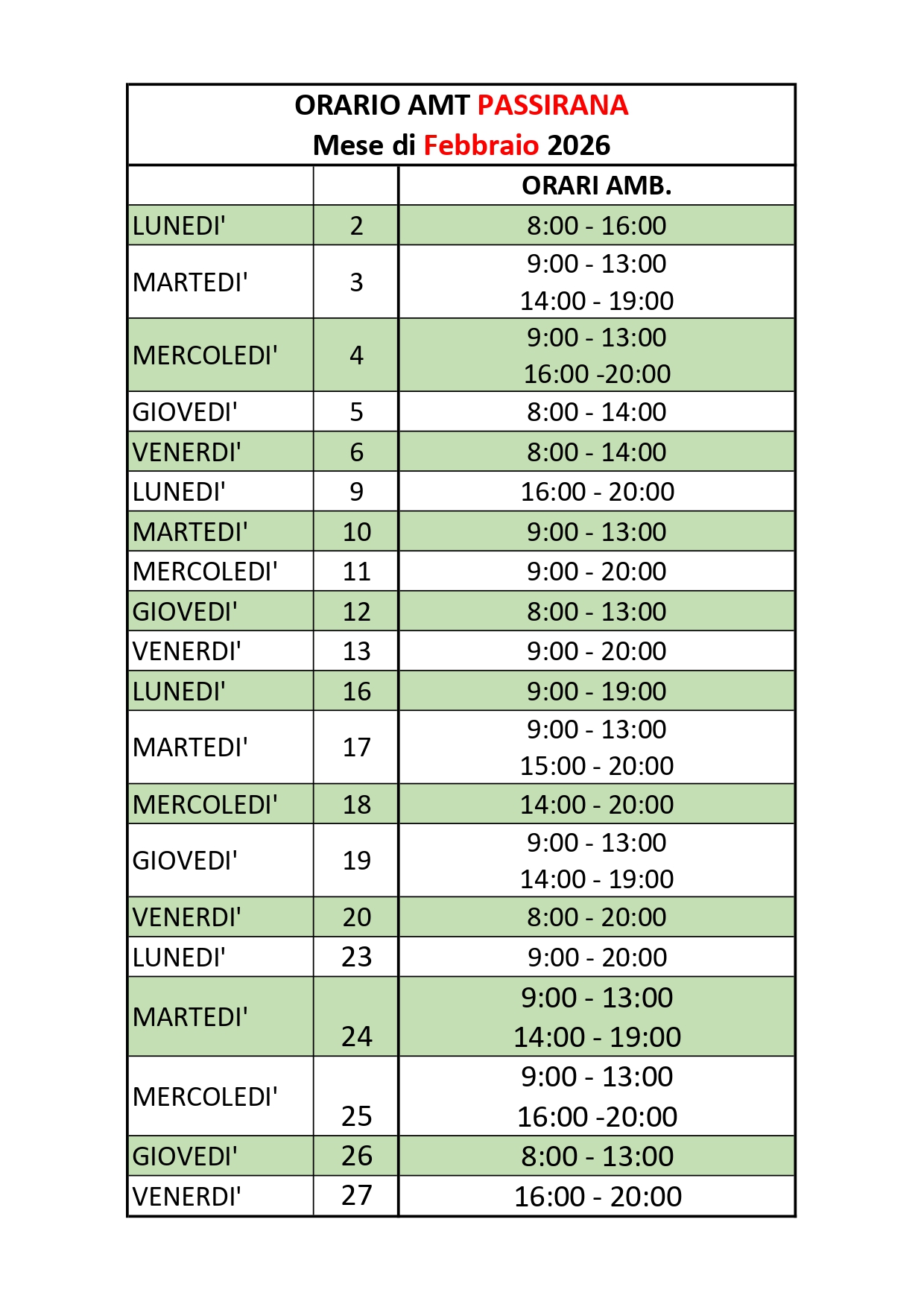 Gli orari del mesi di FEBBRAIO (solo previo appuntamento)