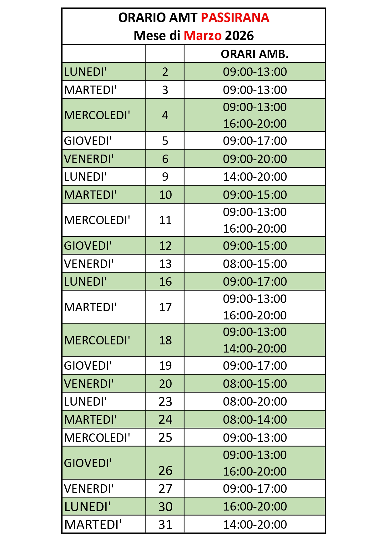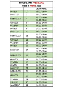 I nuovi orari del mesi di MARZO (solo previo appuntamento)