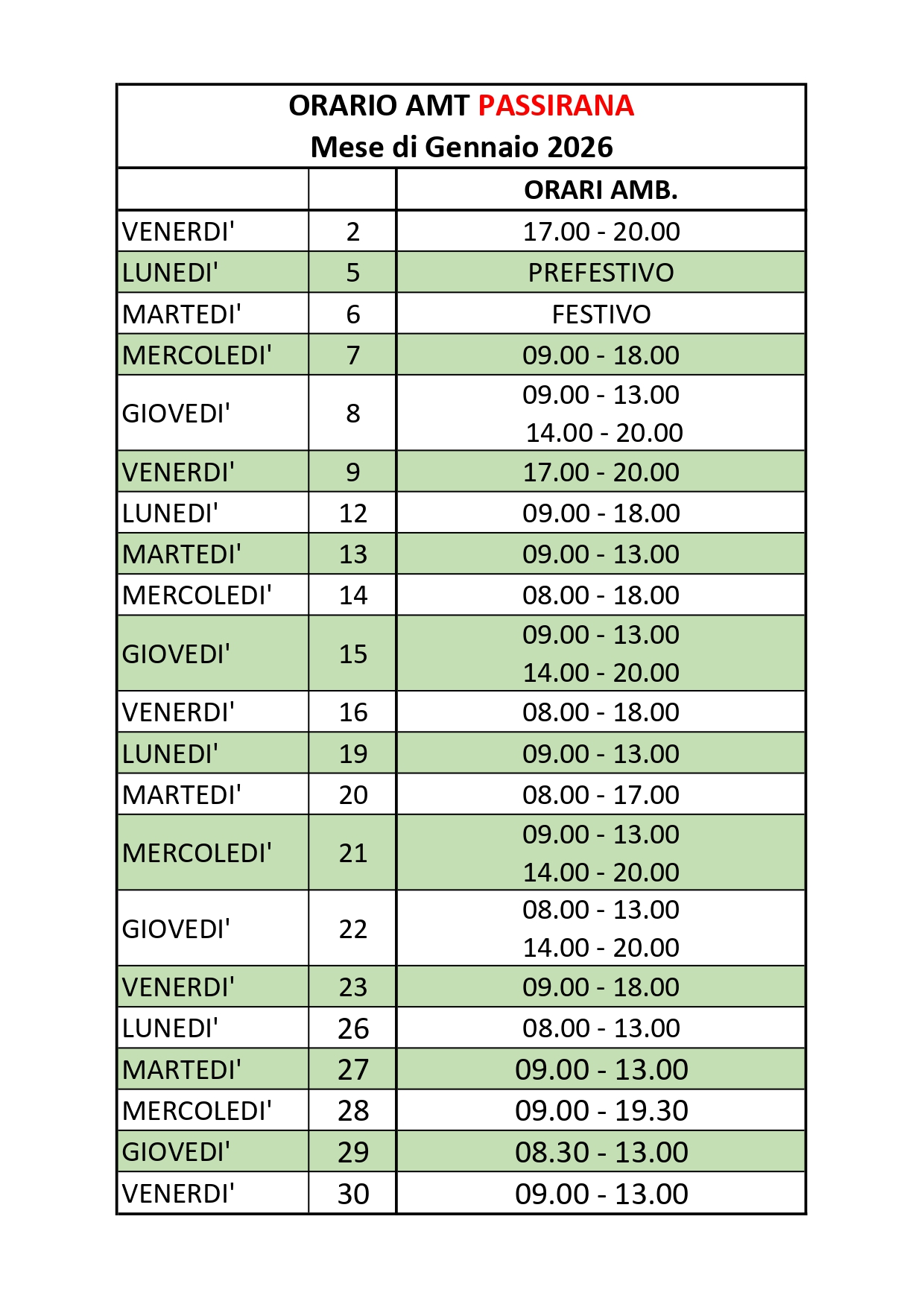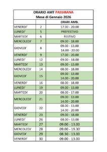 Gli orari del mesi di GENNAIO (solo previo appuntamento)