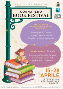 Mercoledì 15 aprile si apre la quinta edizione del Cornaredo Book Festival, il festival della letteratura per bambini e ragazzi, che si svolgerà fino al 28 aprile, con tanti appuntamenti “a tu per tu” con alcuni degli autori di libri per ragazzi, tra i più importanti e conosciuti. Per gli alunni delle scuole dell’infanzia, delle primarie e delle scuole secondarie un’occasione unica per conoscere da vicino gli scrittori e le scrittrici, far loro domande e scoprire i mondi meravigliosi descritti nei loro libri.