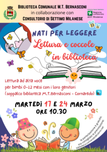 Letture e Coccole in biblioteca, con le bibliotecarie di Cornaredo in collaborazione con il consultorio di Settimo Milanese: due appuntamenti per i piccolissimi da 0 a 12 mesi e per le mamme ed i papà.