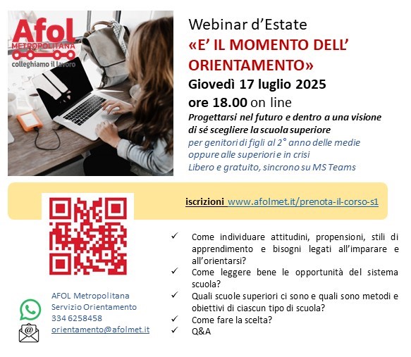 Webinar di orientamento scolastico «E’ IL MOMENTO DEL RI-ORIENTAMENTO», a cura di AFOL Metropolitana: