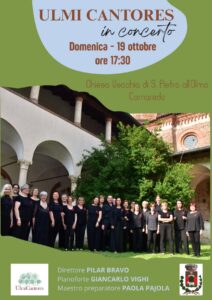 Nell’ambito della rassegna musicale dell’autunno sanpietrino presso la Chiesa Vecchia di S.Pietro all’Olmo, domenica 19 ottobre alle 17.30 il coro Ulmi Cantores si esibisce in un concerto per coro e pianoforte.
