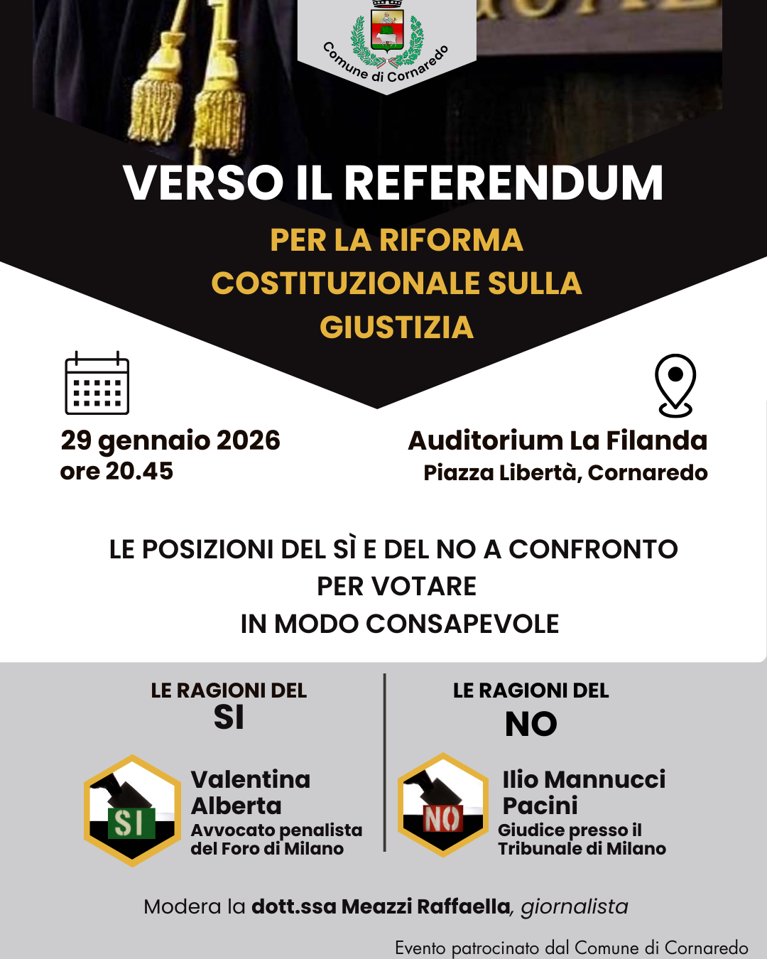 Il Comune di Cornaredo patrocina un incontro per illustrare alla cittadinanza i contenuti del prossimo referendum sulla riforma costituzionale della giustizia.
