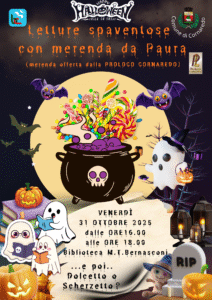 Venerdì 31 ottobre dalle ore 16.00, letture spaventose per bambini che non hanno paura di mostri e vampiri! La Proloco di Cornaredo offrirà poi una merenda da brivido a tutti i partecipanti.