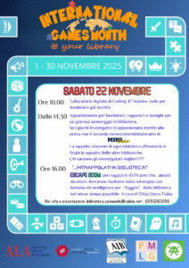 Da alcuni anni novembre è il mese dedicato al gioco in biblioteca. La “giornata internazionale gioco in biblioteca” è celebrata a livello internazionale durante l’ “Intenational Games Month”. La biblioteca di Cornaredo dedica l’intera giornata di sabato 22 novembre ai giochi da tavolo, in famiglia e con gli amici.