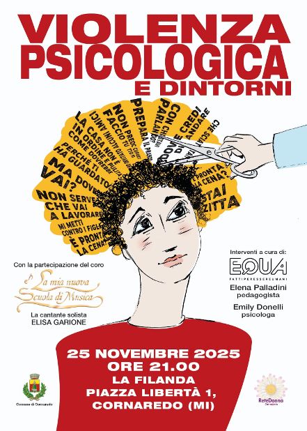Anche quest’anno il Gruppo di Rete Donna ha organizzato un importante evento dedicato al 25 novembre – Giornata Internazionale per l’eliminazione della violenza contro le donne. L’evento, dal titolo Violenza Psicologica e Dintorni: Una Serata di Riflessione e Musica si terrà martedì 25 novembre alle ore 21:00 presso l’Auditorium La Filanda con ingresso libero.